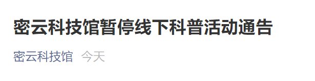 10月27日起北京密云科技馆暂停线下科普活动通告