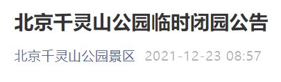 12月23日北京千灵山公园临时闭园公告