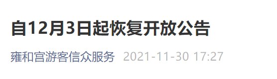12月3日起北京雍和宫恢复开放通知 雍和宫重新开放时间