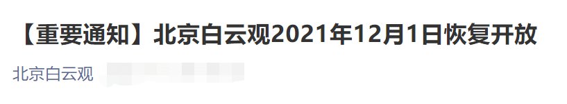 12月1日起北京白云观恢复开放通知