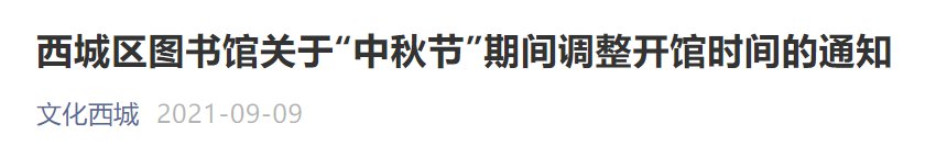 2021北京西城区图书馆中秋节调整开馆时间的通知