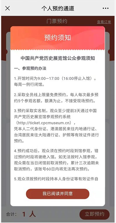 中国共产党历史展览馆个人预约流程及入口