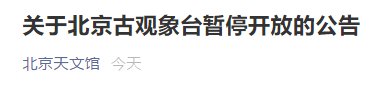 为配合周边地区活动需要,北京古观象台自2021年6月28日至7月2日暂停对社会开放,7月3日恢复正常开放。给您的参观带来不便,敬请谅解。