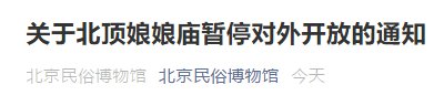 6月6日至7月1日北京北顶娘娘庙暂停对外开放通知