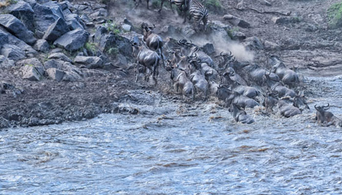 百万头的角马,数十万计的斑马、羚羊组成声势浩大的队伍,从坦桑尼亚的塞伦盖蒂保护区北上,终点是肯尼亚的马赛马拉国家公园,跋涉3000多公里。
