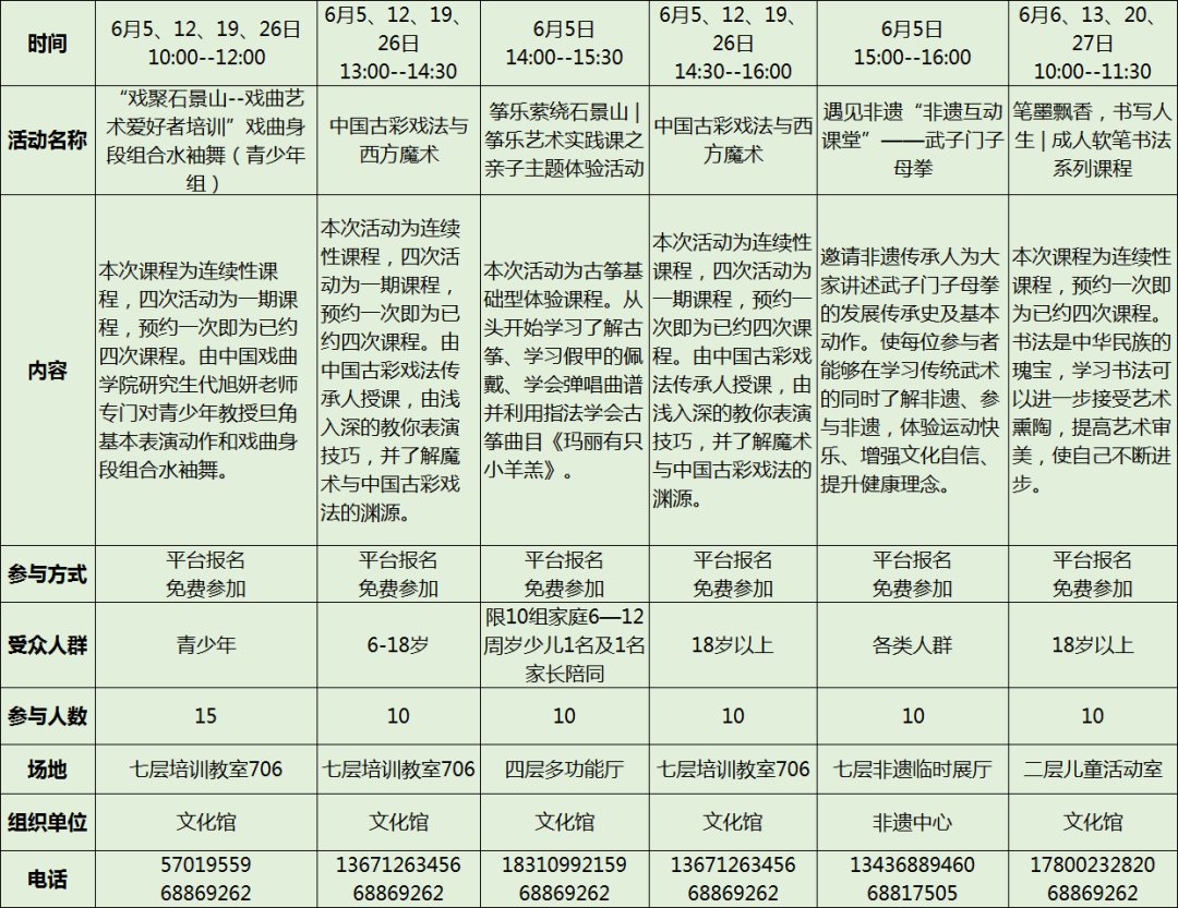 6月1日至6日北京石景山区文化中心活动预告