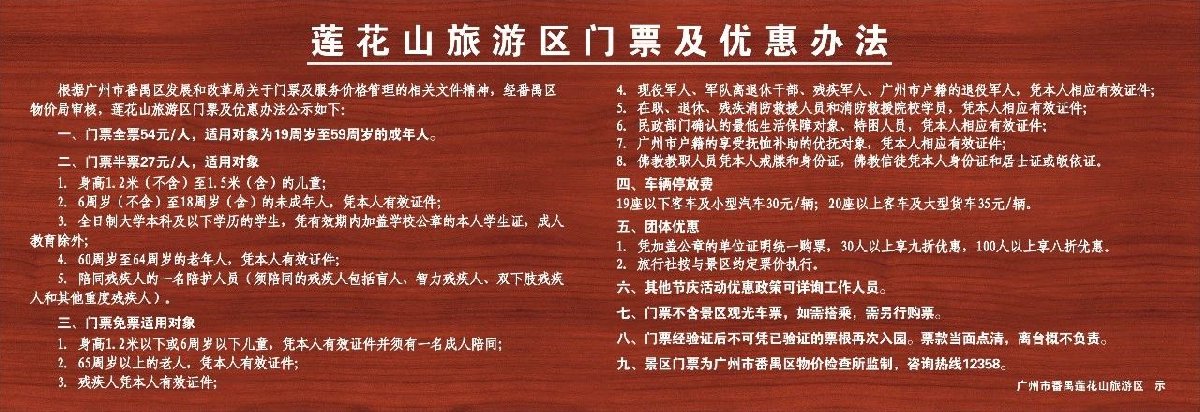 注:建议关注“广州莲花山旅游区”微信公众号,点击菜单栏“微信购票”,购买门票