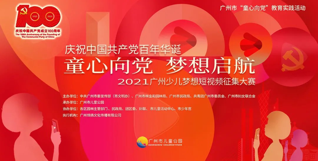 2021年是中国共产党建党100周年,为引导广大少年儿童从小学党史、知党恩、听党话、跟党走,厚植爱党爱国爱社会主义情怀,广州市林业和园林局联合中共广州市委宣传部(市文明办)、广州市民政局、共青团广州市委员会、广州市妇女联合会等单位,结合党史教育活动,指导广州市儿童公园和11个区的儿童公园等相关单位共同策划举办了“童心向党 梦想启航” 庆祝中国共产党百年华诞活动,向全市少年儿童征集梦想,引领少年儿童通过学习党的历史,坚定理想信念,在“十四五”开局之年展望未来,放飞梦想的翅膀,礼赞中国共产党百年华诞。