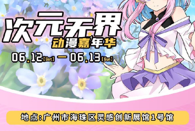 2021年6月12日10:00-2021年6月13日17:00期间,广州次元无界动漫嘉年华将在中岱交易广场灵感创新会展中心举办,活动内容包括国漫、美食、纸片人、制服、手工、官摊、签售、电玩等要素!
