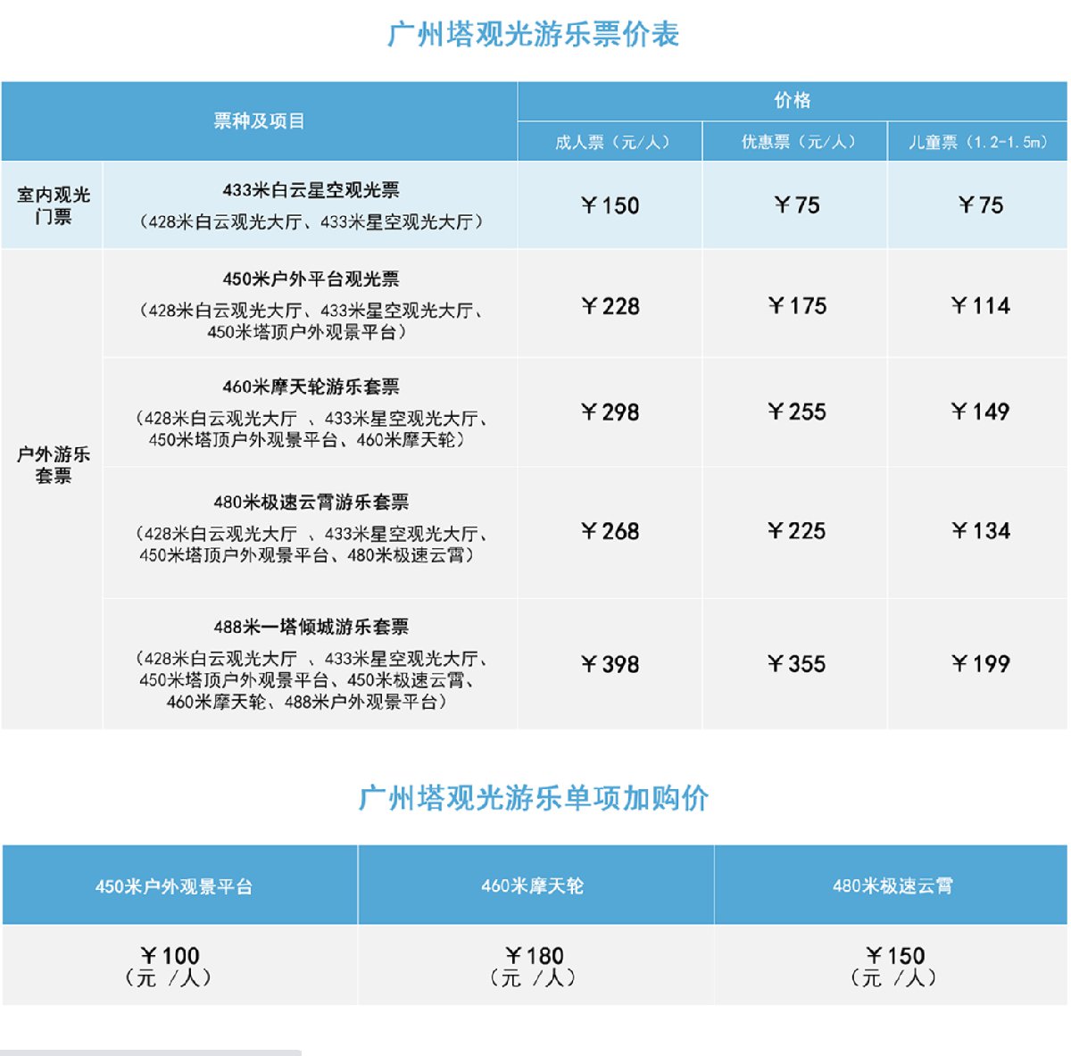 4. 广州塔实行分时段观光游览,门票以2小时为一个时段(第一个时段为2.5小时),全天共六个时段,具体为:
