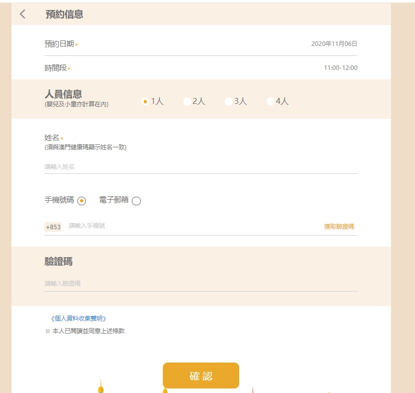 2.填写相关信息(人员、姓名、手机号、验证码),点击确认即可。