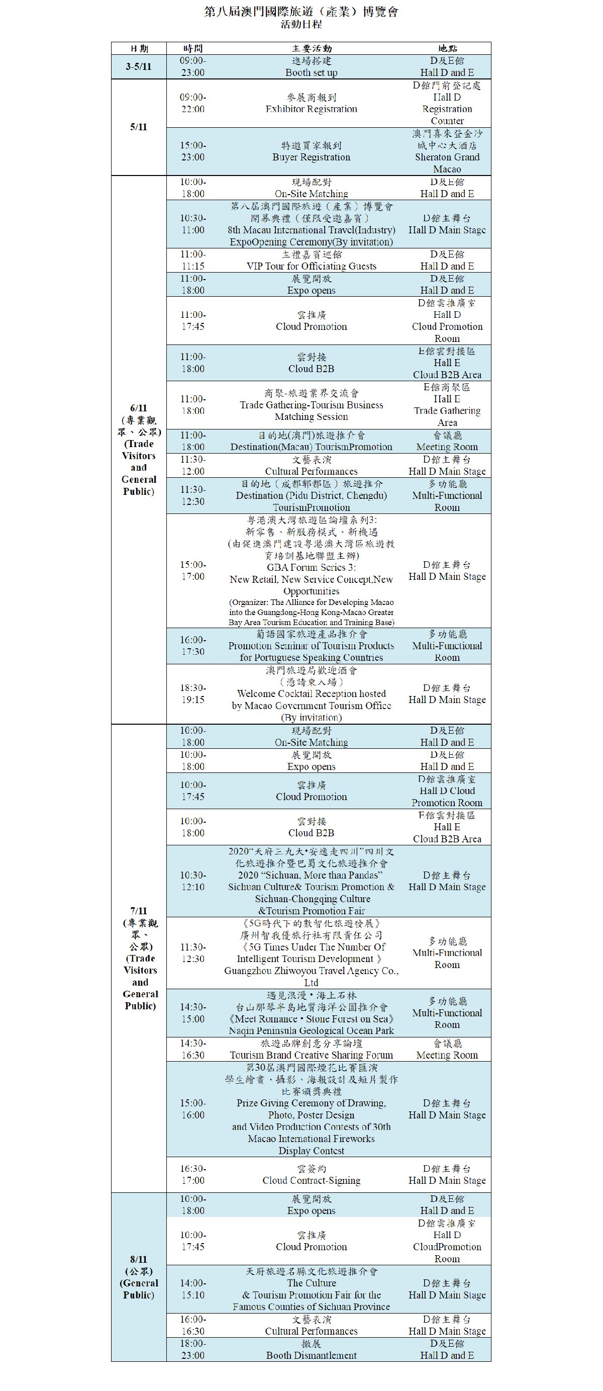 2020第八届澳门国际旅游产业博览会活动日程表(最新)