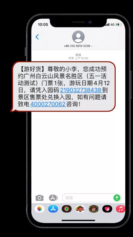 ⑥接收入园码短信开始行程