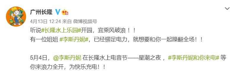 ✔ 李斯丹妮:5月4日,李斯丹妮在长隆水上电音节——星潮之夜 ,李斯丹妮和你来电等你来浪力全开,为快乐充电!!