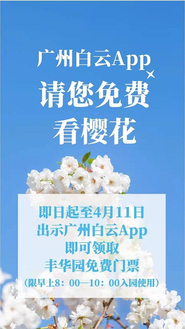 即日起,下载“广州白云”APP,即可获得当日一张早上8点到10点进园的免费门票
