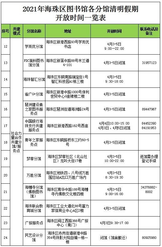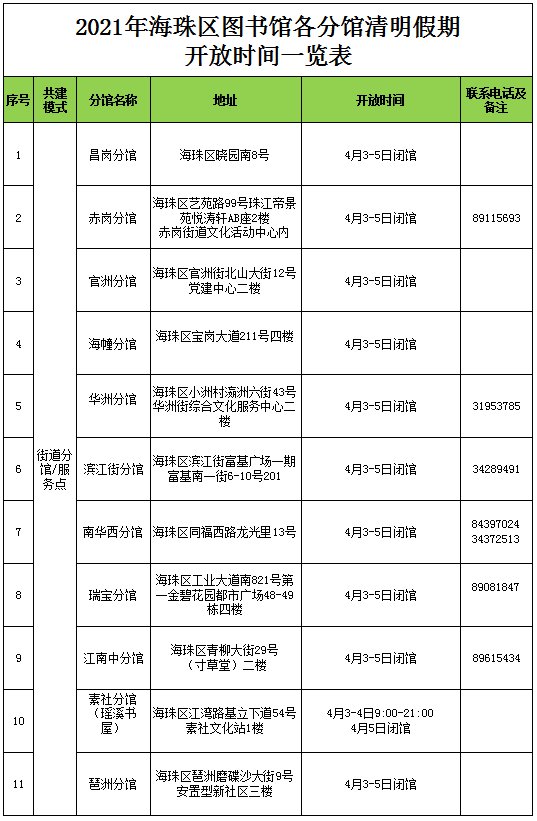 2021广州海珠区图书馆清明节开放时间一览