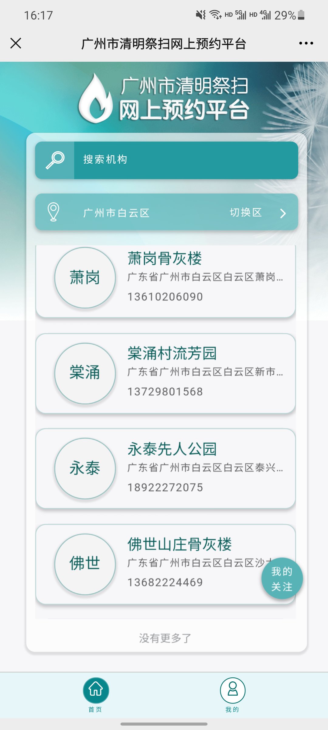 1、进入预约入口,选择祭扫场所(例如:白云区 佛世山庄)