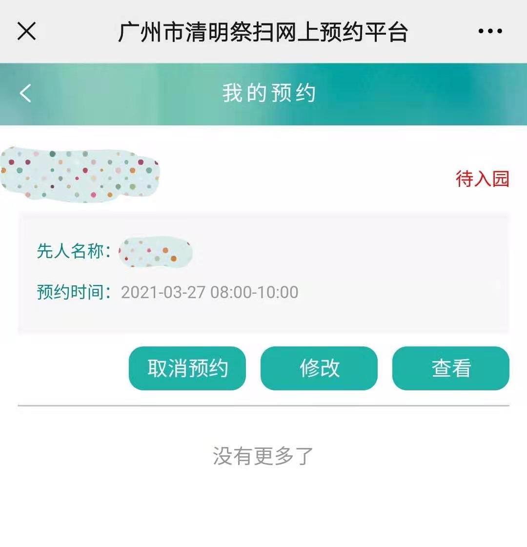 预约成功后,如因故不能前往的,预约人可以在拜祭前通过预约平台的个人中心办理线上取消预约。