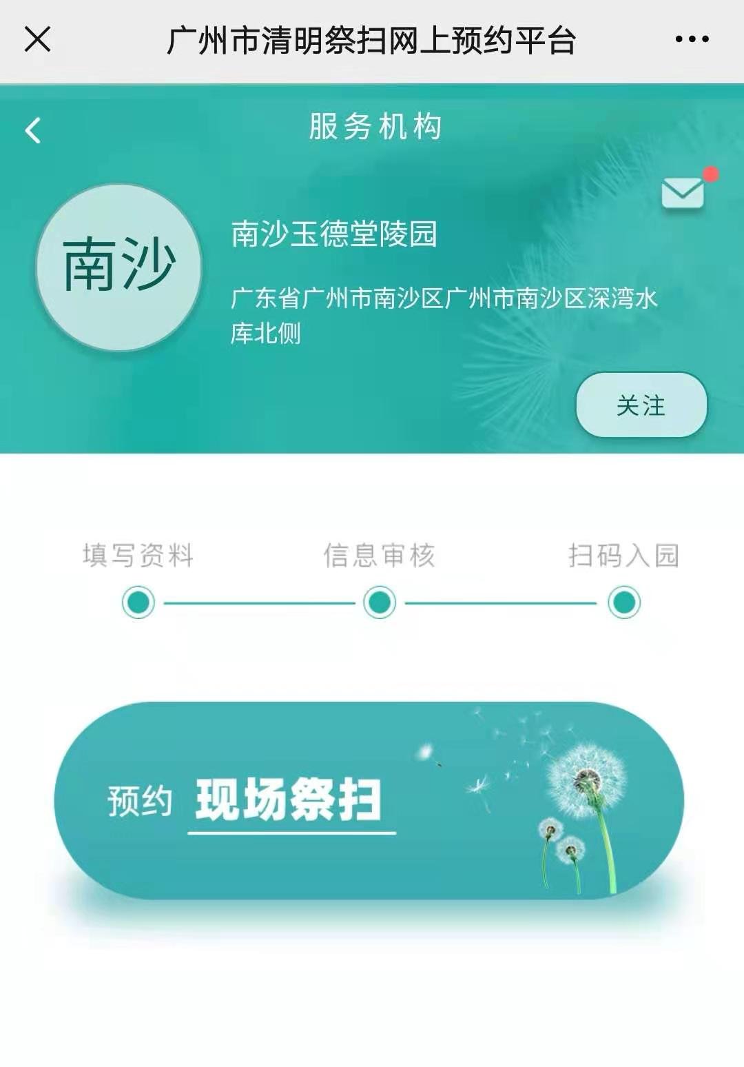 进入预约系统→选择“广州玉德堂陵园”→完整填写真实信息→完成预约(收到成功短信、入场验证码)