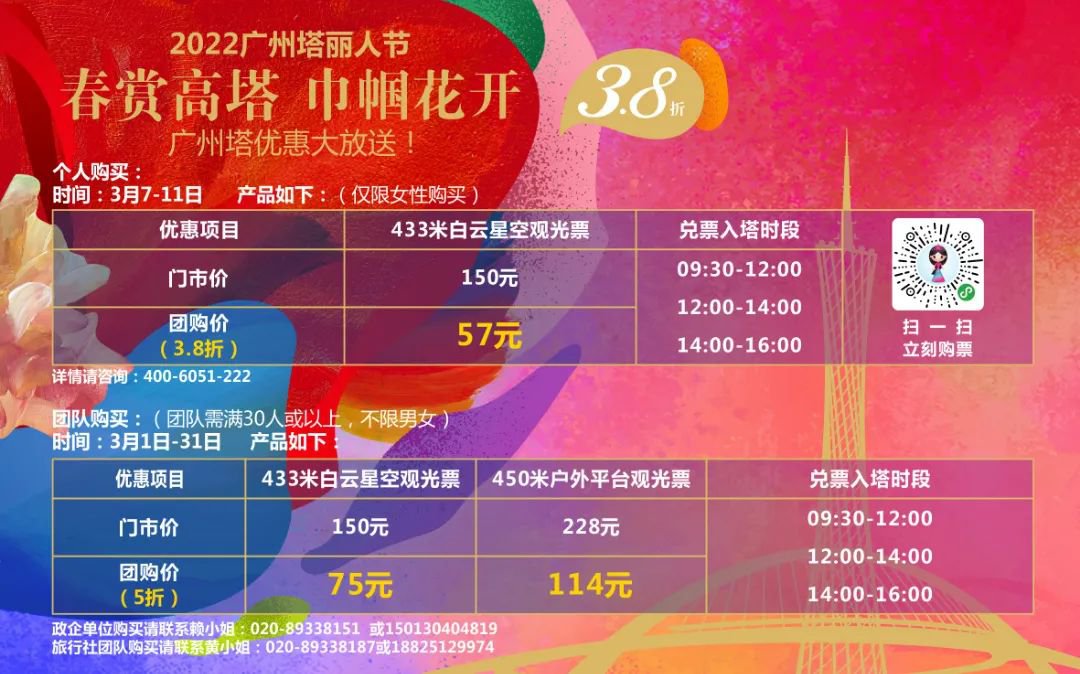 1、活动政策:女同胞购“白云星空观光票”享3.8折优惠,即57元/人 。