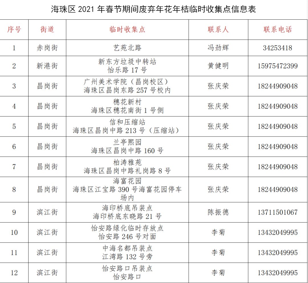 2021广州海珠区年花临时收集点一览(2021年广州海珠区花市会开吗)
