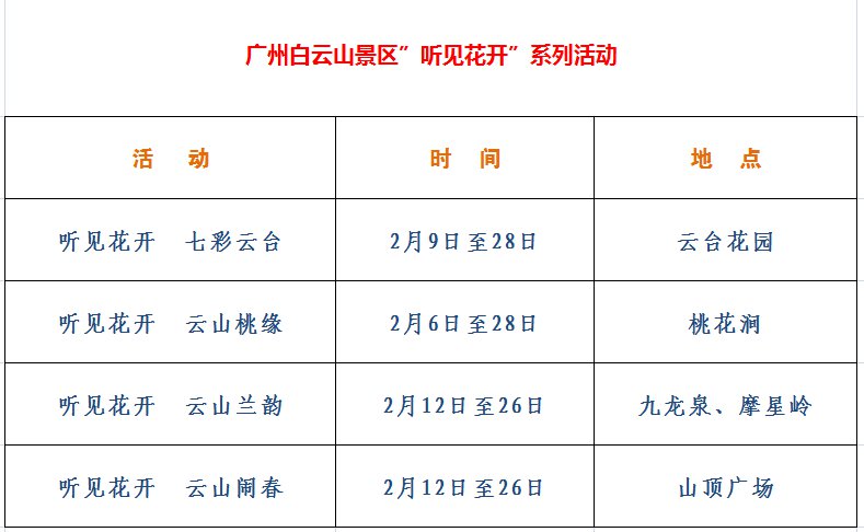 “广州过年,花城看花”,牛年春节,白云山邀你赏花过大年、闹元宵。今年2月,广州白云山景区为市民游客准备一系列丰富多彩的生态文化游玩活动:醒狮贺岁、花展迎春、汉服游园、桃花诗词……绝对能弥补你春节假期不能外游的遗憾。