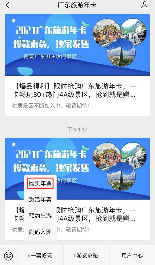 1、首先进入“广东旅游年卡”公众号,点击“购买年卡”;