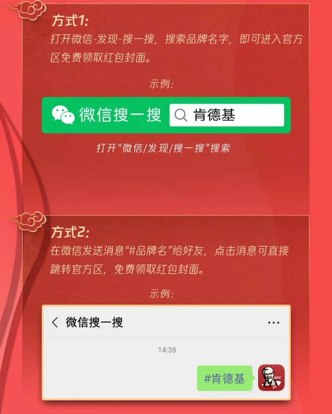方式一:打开微信发现搜一搜,搜索品牌名字,即可进入官方区免费领取红包封面。