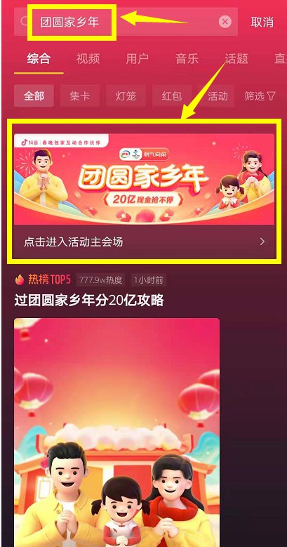 方法二:搜索“团圆家乡年”,即可进入活动入口