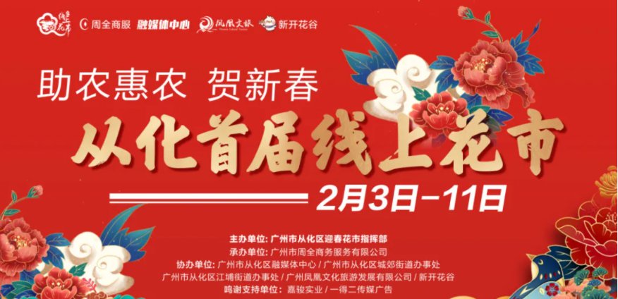 1月27日在“广州过年 花城看花”专题新闻发布会上,明确今年广州不再按传统模式开展迎春花市活动。为了积极响应上级号召,通过互联网平台开展花市销售活动,对传统花市进行了创新,由广州市从化区城市管理和综合执法局、从化区花市指挥部主办,广州市周全商务服务有限公司协办,开发“从化线上花市”小程序,将于2月3日隆重上线,全面升级“线上为主、线下补充”模式,为广大市民与花卉经销商搭建一座线上便捷采购的桥梁,把花市搬到网上,开展创新型线上花市活动。