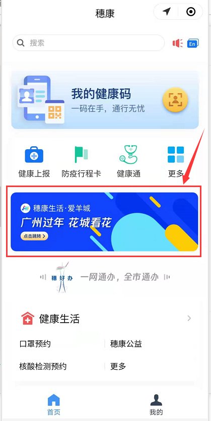 一、进入“穗康”小程序,进入“广州过年,花城看花”活动版块