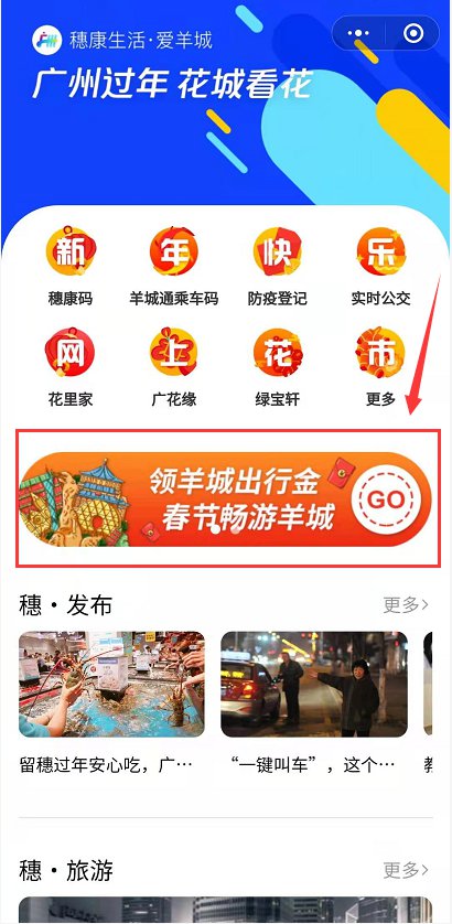 “穗康生活•爱羊城”平台为满足市民本地过年的出行需求,从即日起到大年初七(2月18日),向市民发放20万张羊城通电子交通票。