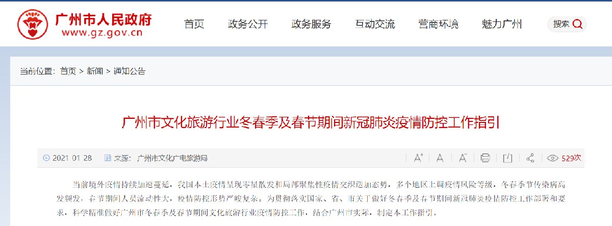 2021广州发布文化旅游行业冬春季及春节期间疫情防控指引