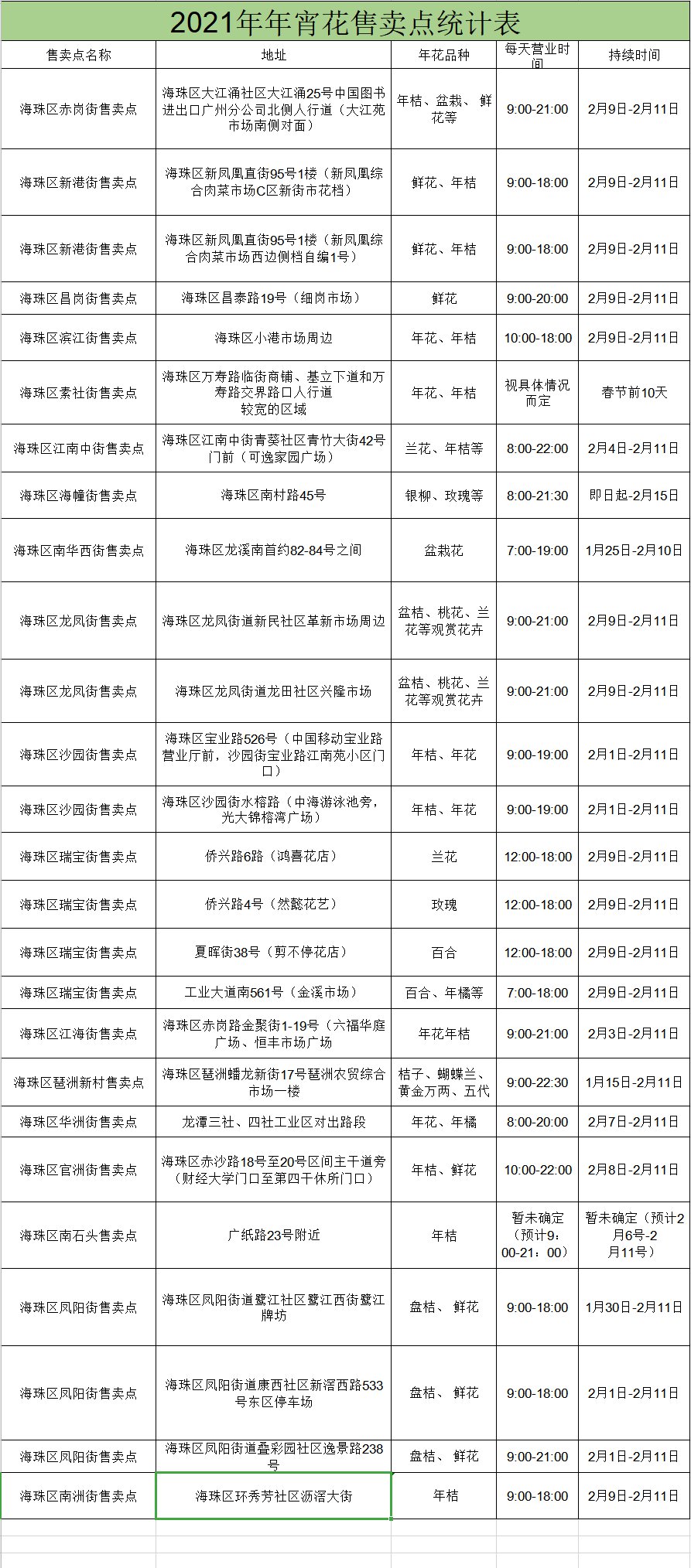 2021广州海珠区线下年花售卖点有哪些 广州海珠区今年有花市吗