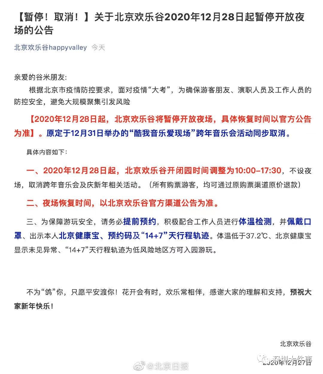 北京欢乐谷暂停开放夜场