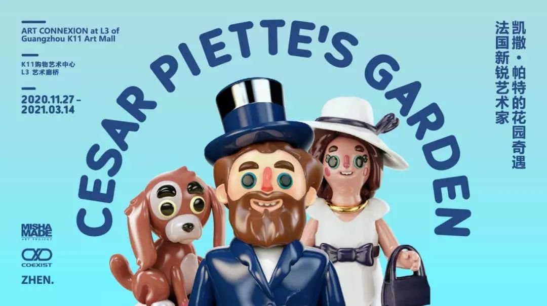 除了“法国先锋跨界艺术家尼尔·贝卢法个展”外,广州K11在三楼的艺术廊桥也设有展览——“凯撒·帕特的花园奇遇”。凯撒·帕特(Cesar Piette)是一位法国新锐艺术家,本次展览展出他的全新雕塑(木制+彩色)以及绘画作品,展期同样是到明年的3月14日。