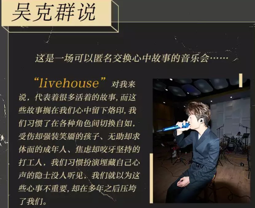 这是场可以匿名 交换心中故事的音乐会, 也许这些故事曾让你忧虑、自卑、甚至绝望,但我们将借由彼此的故事,疗愈彼此,借由彼此的歌声获得释放。