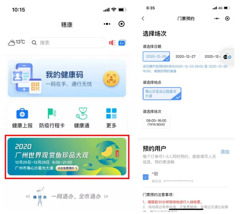 因今年疫情特殊情况,为配合疫情防控工作,预约系统将结合穗康码小程序,对所有预约入场游客进行健康信息的收集