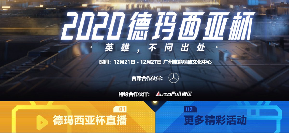 2020德玛西亚杯将于12月21日至12月27日在广州黄埔区举办,来自LPL、LDL和4个大众赛事渠道的24支战队将在广州宝能观致文化中心进行冠军的角逐。为了加强LPL与LDL、职业联赛与非职业队伍之间的交流和碰撞,本次德杯将采用全新赛制,英雄,不问出处,实力才是唯一的通行证,在德杯的舞台上,我们期待新的传奇。