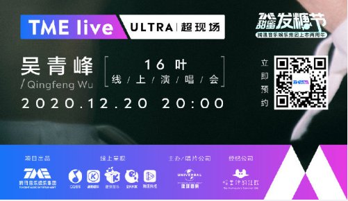 12月20日晚「吴青峰16叶线上演唱会」将在以上平台全程播出!感受吴青峰以曲与诗词相和,以心与诗人相照,翻飞册叶一片,翻开册叶一角,带来全新的音乐体验!