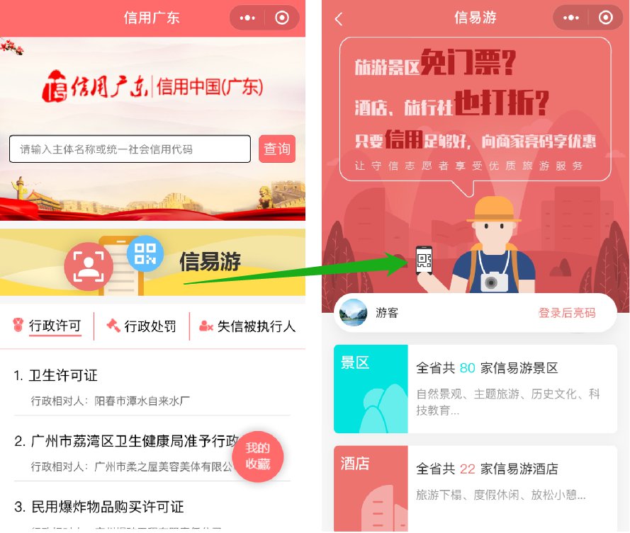 或微信搜索“信用广东”小程序,点击“信易游”板块进入