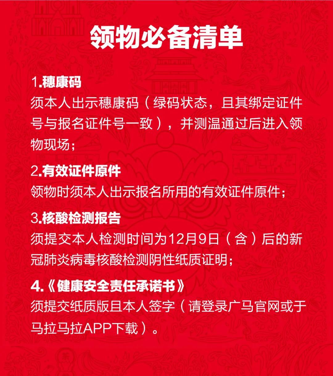 2、参赛物品领取高峰将出现在12月12日(周六),特此提示选手提前准备好身份证件,选择错峰预约时间前往广马博览会领取本人参赛物品。