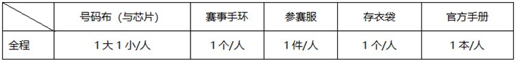 * 全程选手每人两块号码布,一块大号码布(含芯片)和一块小号码布(存衣用);