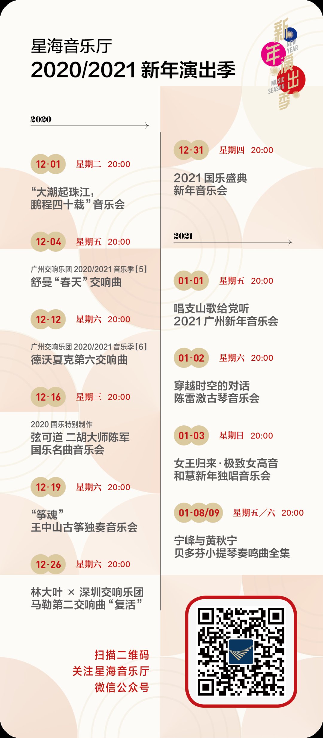 2020-2021广州星海音乐厅新年演出季演出安排一览