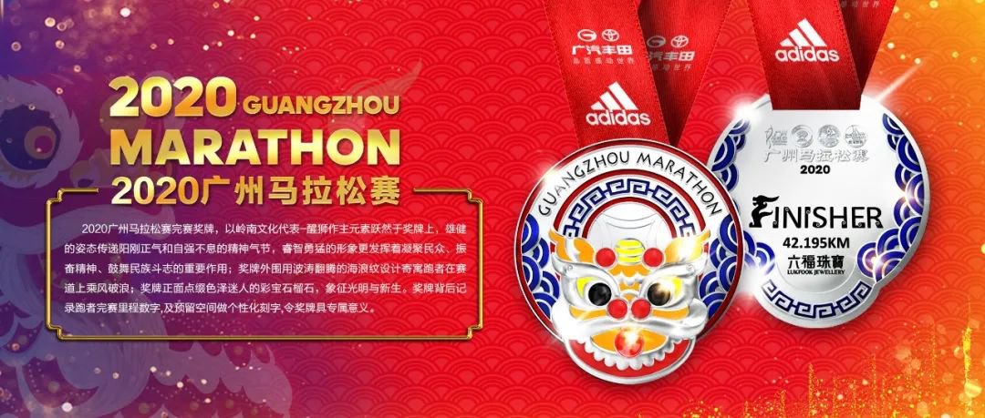 今年的广州马拉松赛奖牌由六福珠宝倾情赞助,以岭南文化代表-醒狮作主元素跃然于奖牌上,雄健的姿态传递阳刚正气和自强不息的精神气节,睿智勇猛的形象更发挥着凝聚民众、振奋精神、鼓舞民族斗志的重要作用;奖牌外围用波涛翻腾的海浪纹设计寄寓跑者在赛道上乘风破浪;奖牌正面点缀色泽迷人的彩宝石榴石,象征光明与新生。奖牌背后记录跑者完赛里程数字,及预留空间做个性化刻字,令奖牌具专属意义。