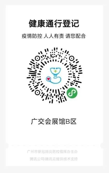 02、提前注册“穗康码”,进场时出示健康码。(PS:申请穗康码时,如需填写场馆所在地,可填写海珠区-琶洲街道-琶洲西南社区)同时,进入展馆需要现场扫描琶洲广交会展馆B区通行码。