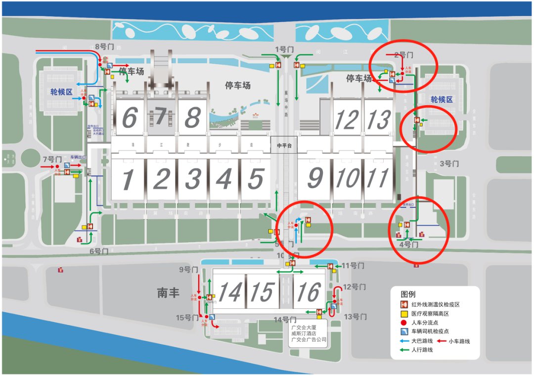 03、测温正常过安检。本届展会共设有4个红外测温检疫点,请各位结合自身出行交通工具,选择最合适的入口进入展馆。
