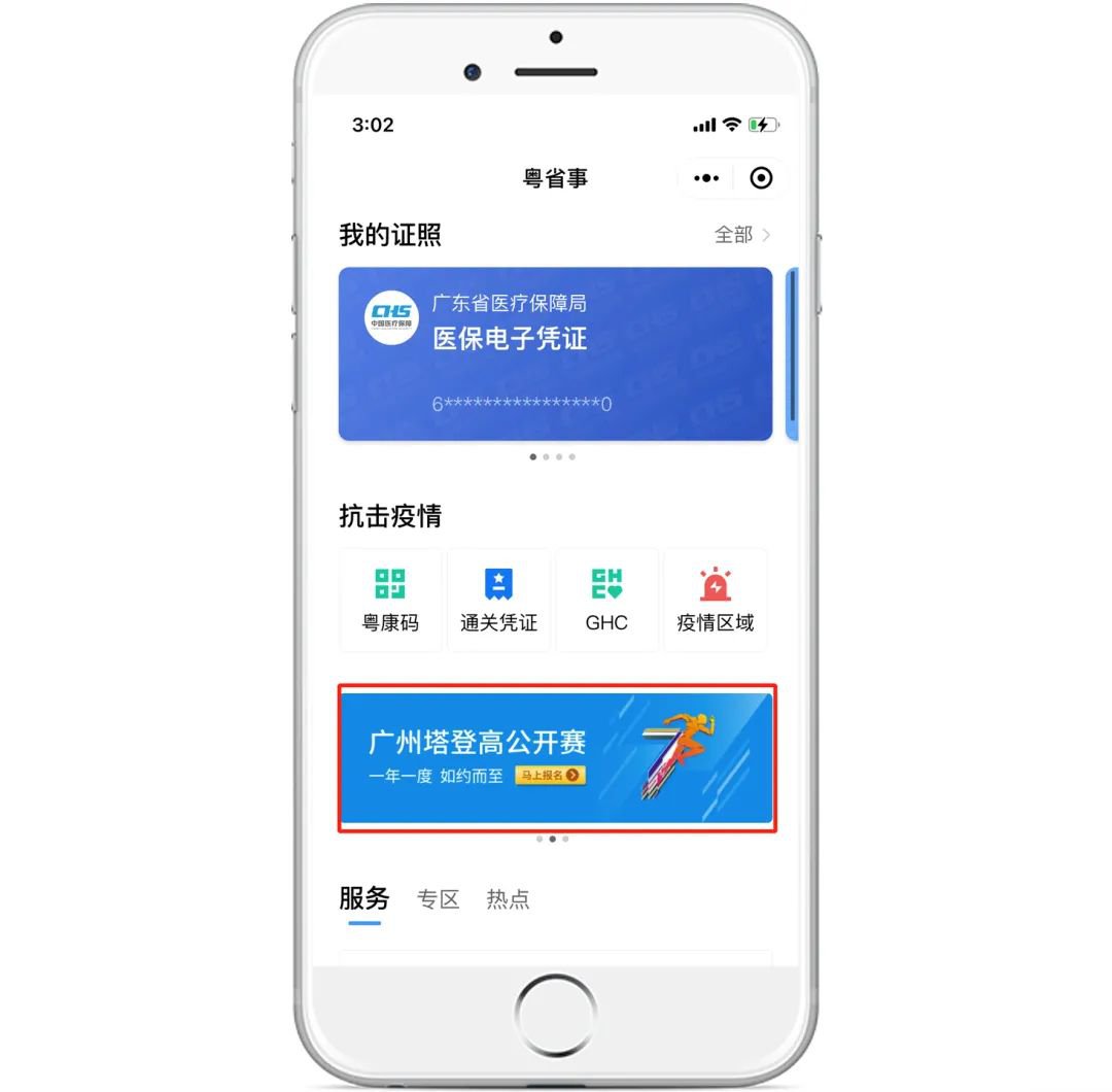 微信搜索登录“粤省事”小程序,首页点击“广州塔登高公开赛”进行报名。