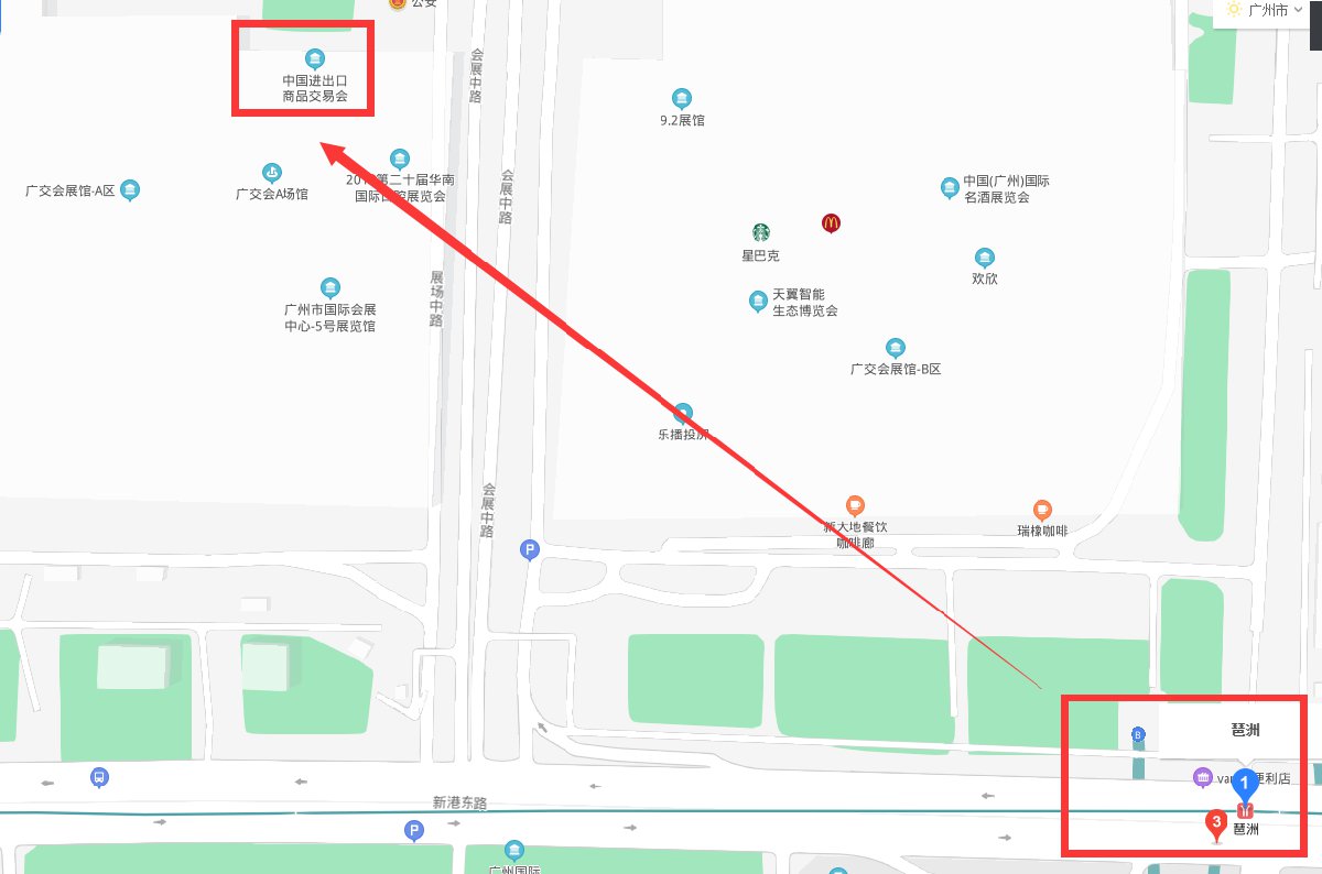 从广州南站:乘坐地铁2号线(嘉禾望岗站方向)至昌岗站,换8号线(万胜围站方向),并在新港东路站(可到展馆A区)或琶洲站(可到展馆B区和C区)下车。