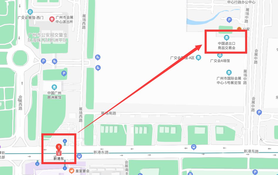 从广州火车站:乘坐地铁2号线(广州南站方向)至昌岗站,换8号线(万胜围站方向),在新港东站出口(A区)或琶洲站(B区或C)。